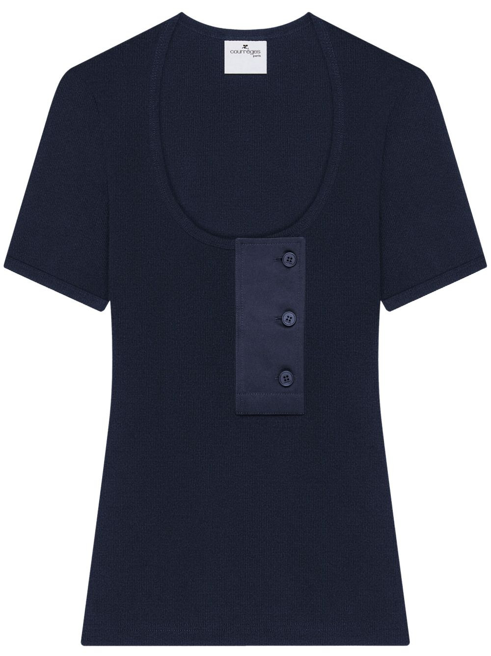 Oblique 90's T-shirt Highlights - Navy blue - Front button placket - Scoop neck - Short sleeves - Straight hem Imported Composition Cotton 98%, Elastane 2% Washing instructions Read Manufacturer Guidelines