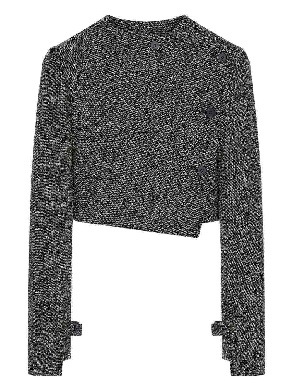 oblique buttoned jacket Highlights - Grey - Wool - Asymmetrical hem - Long sleeves - Button fastenings Imported Composition Wool 100% Washing instructions Read Manufacturer Guidelines