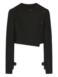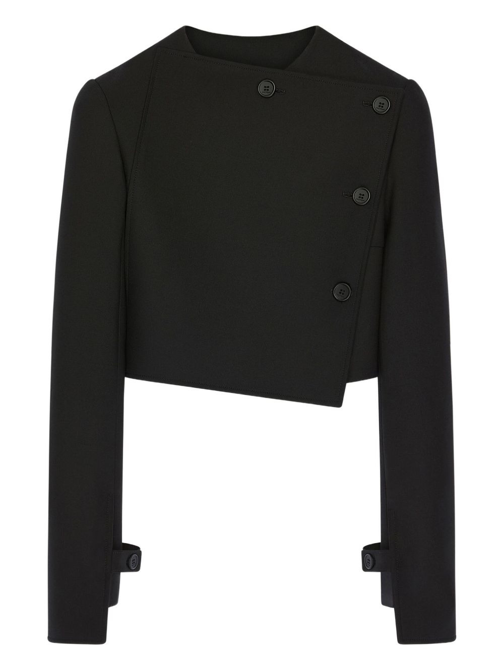 oblique buttoned jacket Highlights - Black - Asymmetrical closure - Long sleeves - Button detailing Imported Composition Polyester 51%, Wool 41%, Other fibres 8% Washing instructions Read Manufacturer Guidelines