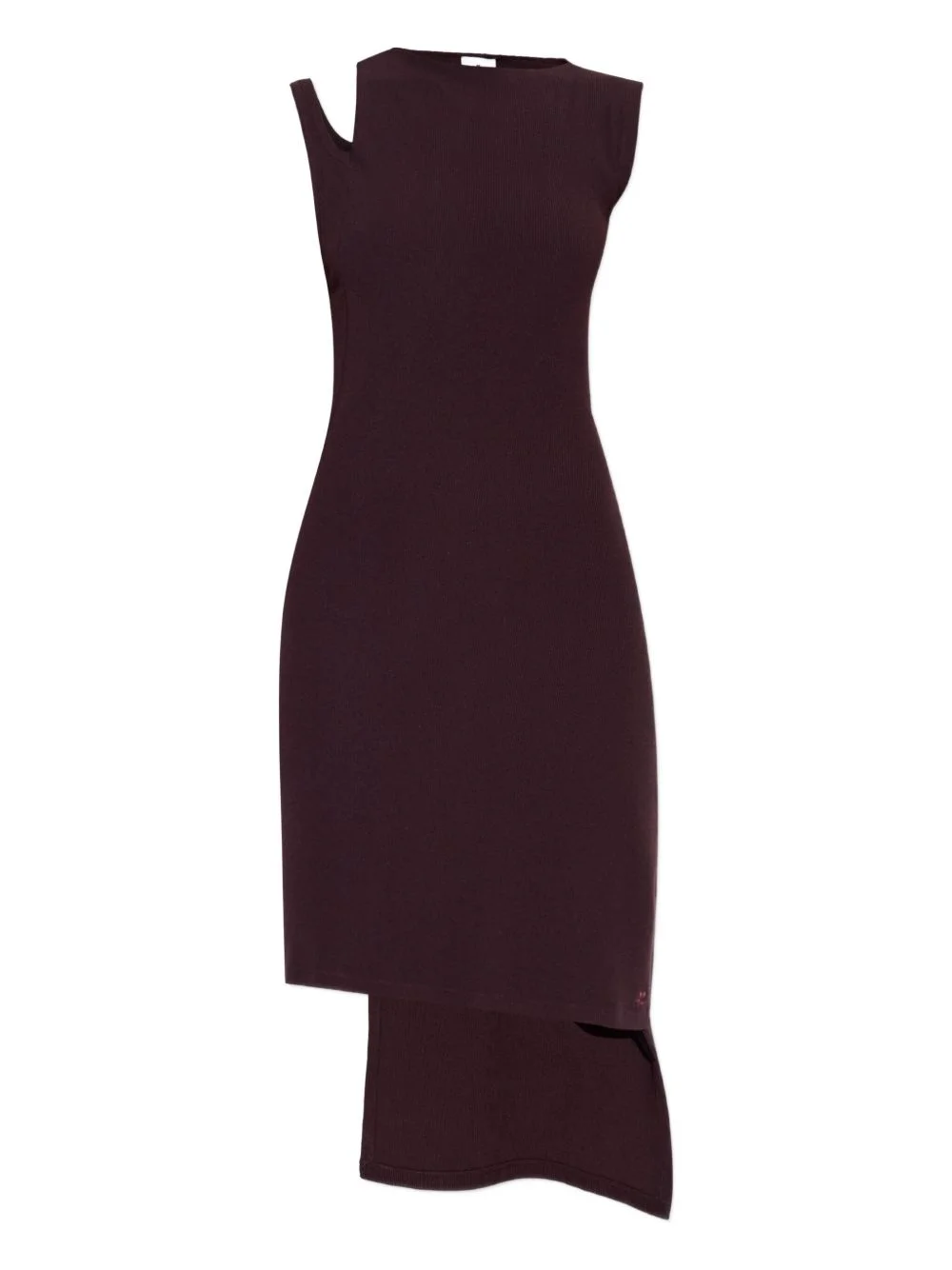 Oblique cut-out asymmetric dress Highlights - Burgundy - Ribbed knit - Asymmetric hem - Cut-out detail - Sleeveless Imported Composition Viscose 70%, Polyester 30% Washing instructions Read Manufacturer Guidelines