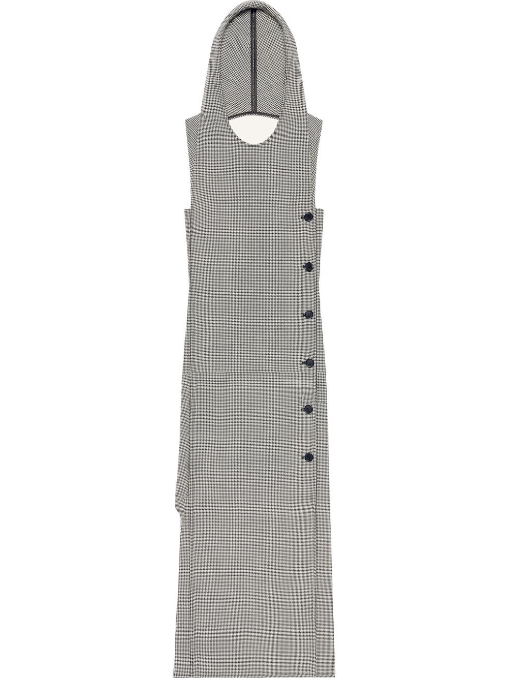 Oblique dress Highlights - Grey - Houndstooth pattern - Classic hood - Round neck - Sleeveless - Side button fastening - Side slit - Mid-length - Straight hem Made In France Composition Polyester 51%, Wool 41%, Fabric 8% Washing instructions Read Manufacturer Guidelines