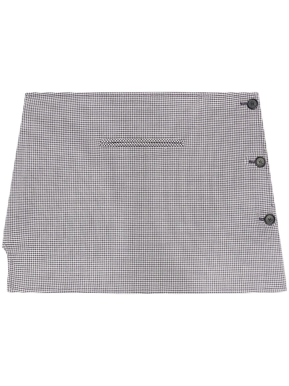 oblique houndstooth mini skirt Highlights - Black/white - Houndstooth pattern - Side slit - Low-rise - Front button fastening - Front welt pocket Imported Composition Polyester 51%, Wool 41%, Polyamide 4%, Elastane 4%