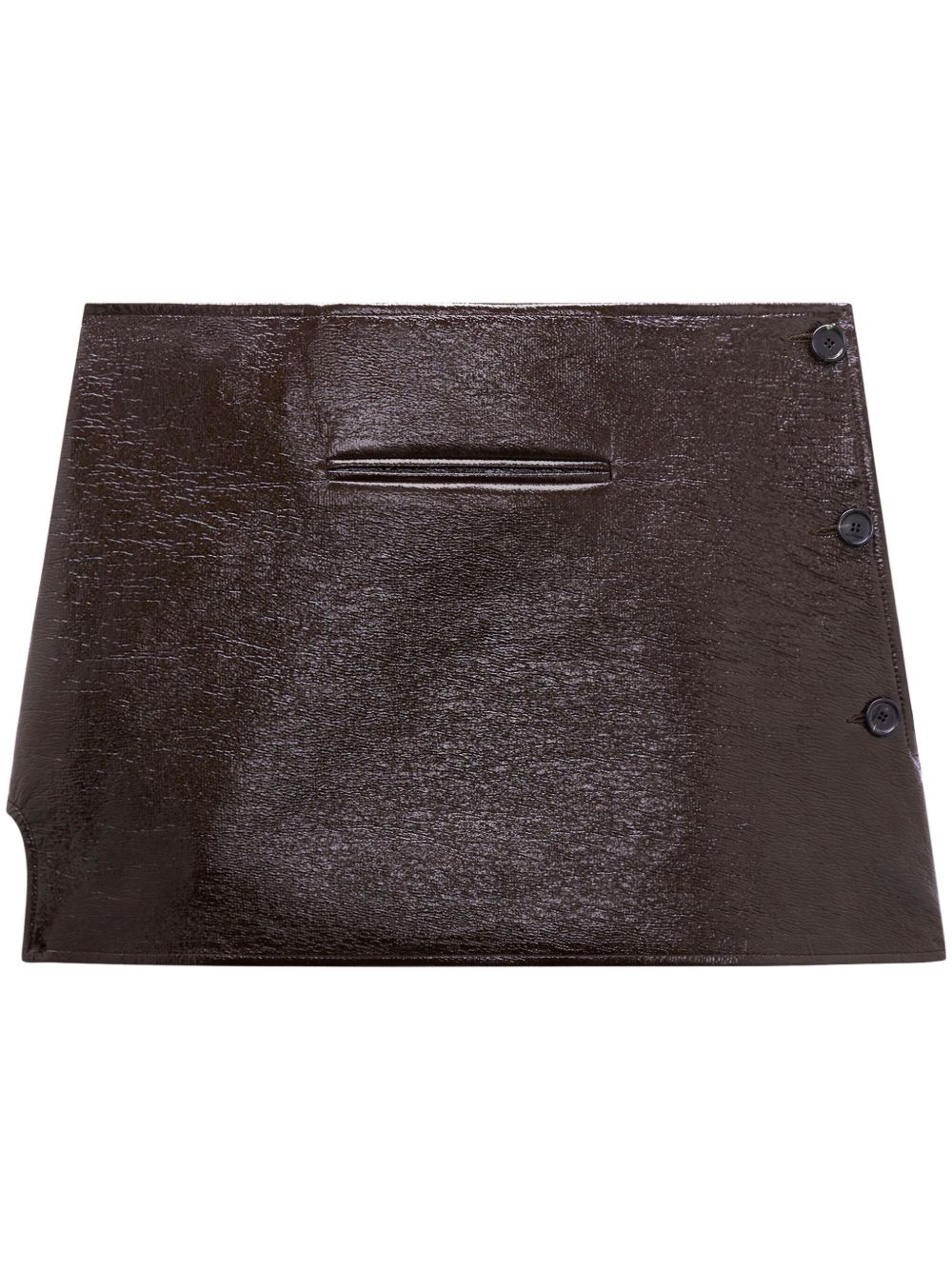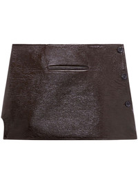 oblique vinyl mini skirt Highlights - Chocolate brown - Cotton blend - Side slit - Trapeze silhouette - Front button fastening - Front welt pocket - Straight hem Imported Composition Cotton 88%, Polyurethane 10%, Elastane 2%