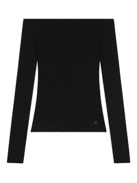 off-shoulder ribbed top Highlights - Black - Off-shoulder - Long sleeves - Straight hem - Embroidered-logo to the front Imported Composition Viscose 70%, Polyester 30% Washing instructions Read Manufacturer Guidelines