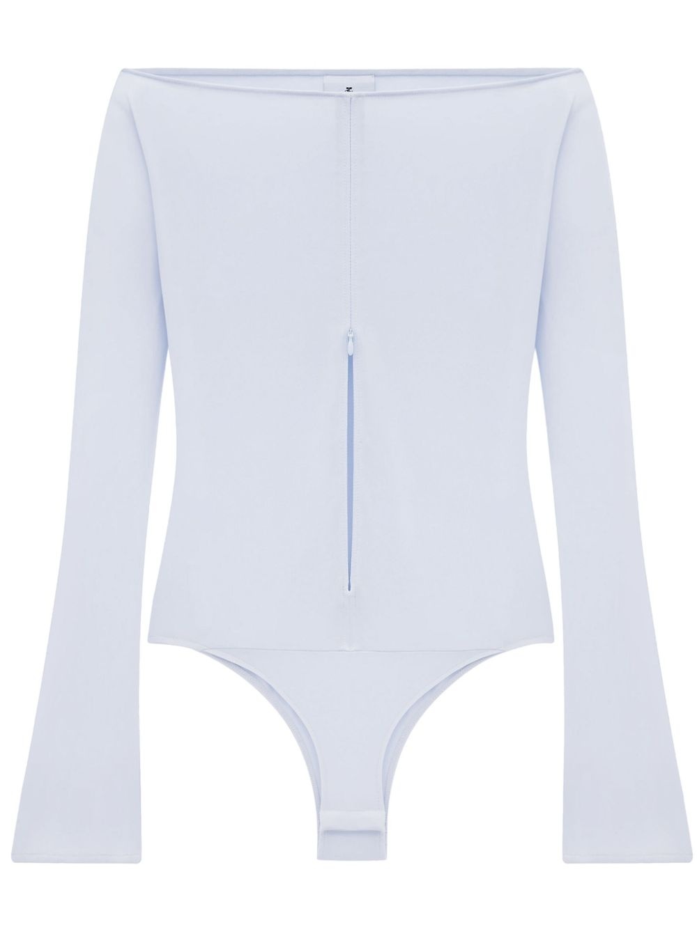 off-shoulder zipped bodysuit Highlights - Light grey - Stretch-design - Off-shoulder - Front zip fastening - Long sleeves - High cut - Press-stud fastening - Just a reminder that this piece must be tried on over your own garments. Made in Italy Composition Viscose 95%, Elastane 5% SIZE & FIT FittingInformation Designed for a close fit throughout Made from a midweight stretch fabric, this piece offers elasticity and flexibility when worn Washing instructions Read Manufacturer Guidelines