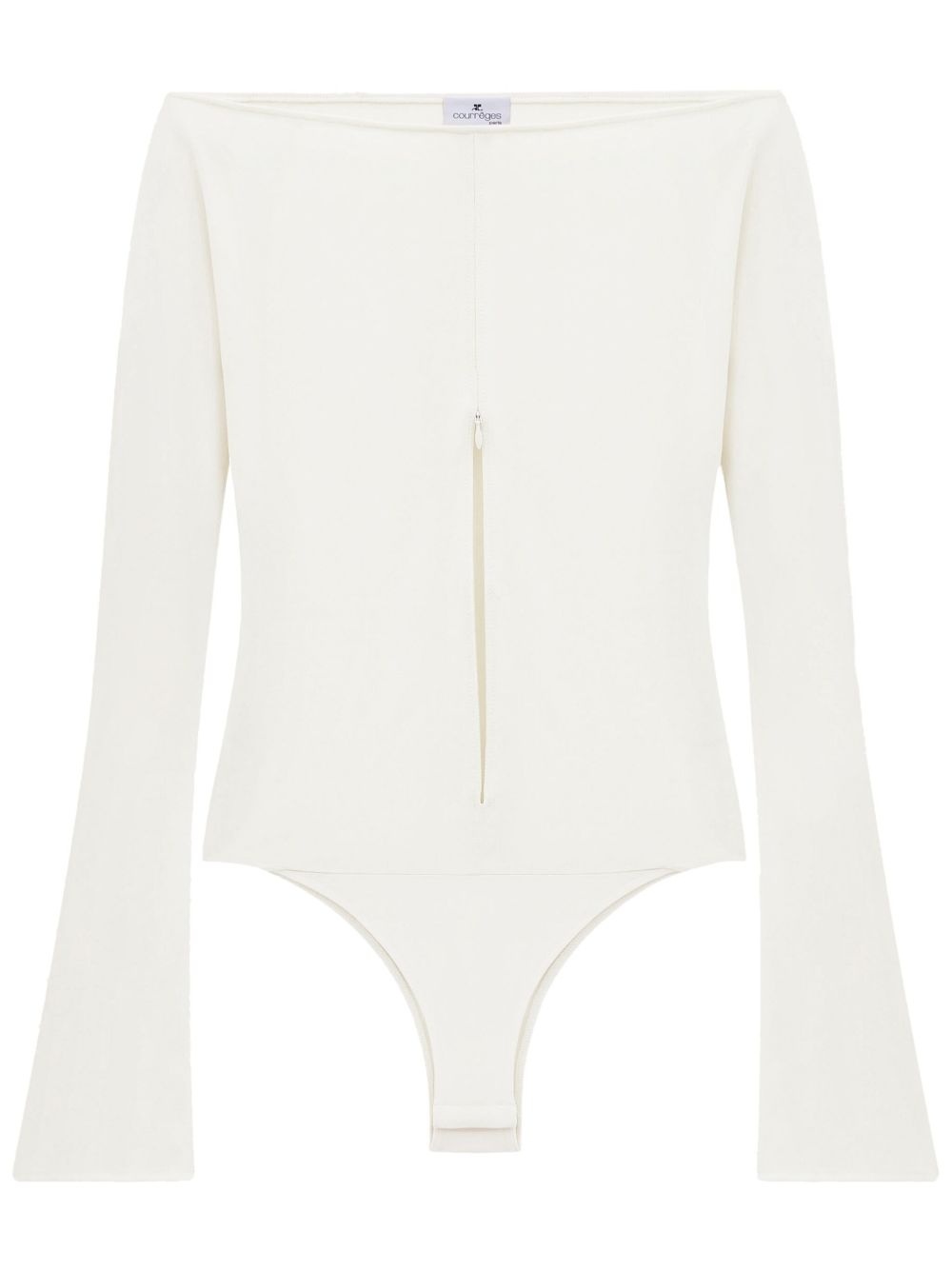 off-shoulder zipped bodysuit Highlights - White - Stretch-design - Off-shoulder - Front zip fastening - Long sleeves - High cut - Press-stud fastening - Just a reminder that this piece must be tried on over your own garments. Made in Italy Composition Viscose 95%, Elastane 5% SIZE & FIT FittingInformation Designed for a close fit throughout Made from a midweight stretch fabric, this piece offers elasticity and flexibility when worn Washing instructions Read Manufacturer Guidelines
