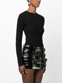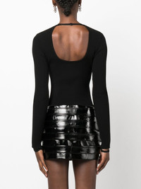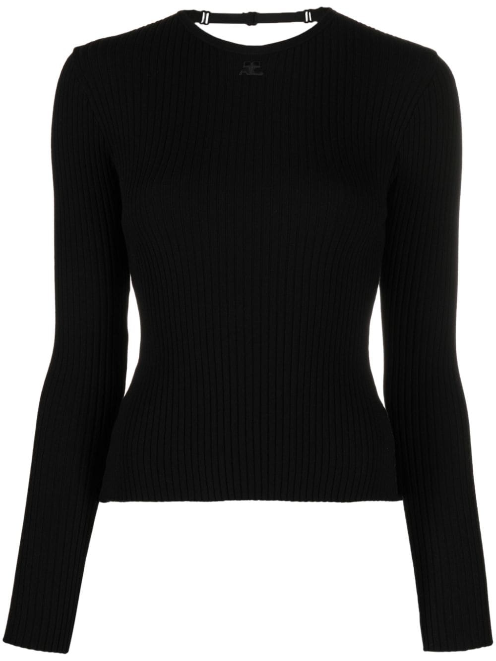 open-back fine-ribbed top Courreges' contemporary approach design is channelled through this fine-ribbed top. Its form-fitting silhouette is detailed with an elegant open-back design secured with an adjustable strap to the rear. Highlights - Black - Rib knit - Elasticated wrists - Round neck Imported Composition Viscose 70%, Polyester 30% SIZE & FIT Model measurements Height 5 ft 10 in(1.77 m) Bust/Chest 29.92 in(76 cm) Hips 34.25 in(87 cm) Waist 23.62 in(60 cm) FittingInformation Designed for a close fit throughout Made with a midweight knit, this piece offers some stretch This piece fits true to size – take your usual size Washing instructions Hand Wash