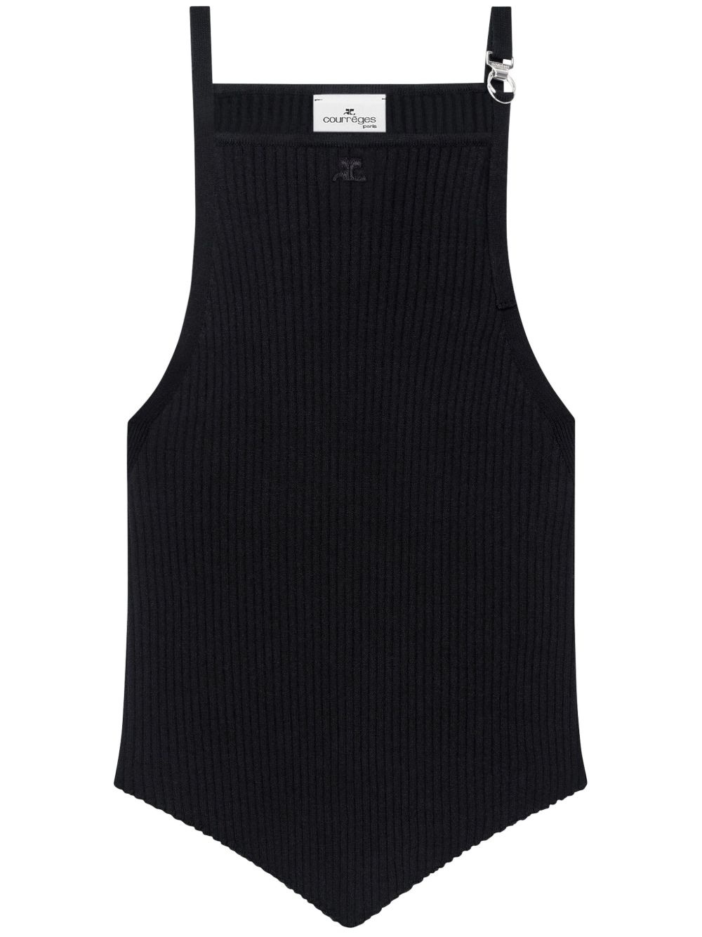 pointy-hem tank top Highlights - Black - Square neck - Buckle-embellished shoulder straps - Fine ribbed - Sleeveless Imported Composition Viscose 70%, Polyester 30%