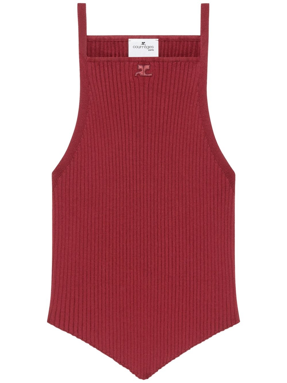 Pointy rib-knit tank top Highlights - Dark red - Ribbed knit - Embroidered logo to the front - Sleeveless - Square neck - Handkerchief hem - Thin shoulder straps - Cropped Imported Composition Viscose 70%, Polyester 30% Washing instructions Read Manufacturer Guidelines
