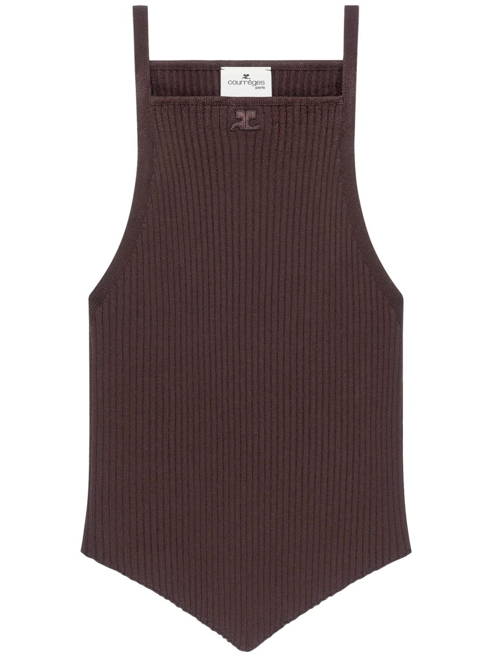 Pointy rib-knit tank top Highlights - Chocolate brown - Ribbed knit - Embroidered logo to the front - Sleeveless - Square neck - Handkerchief hem - Thin shoulder straps - Cropped Imported Composition Viscose 70%, Polyester 30%