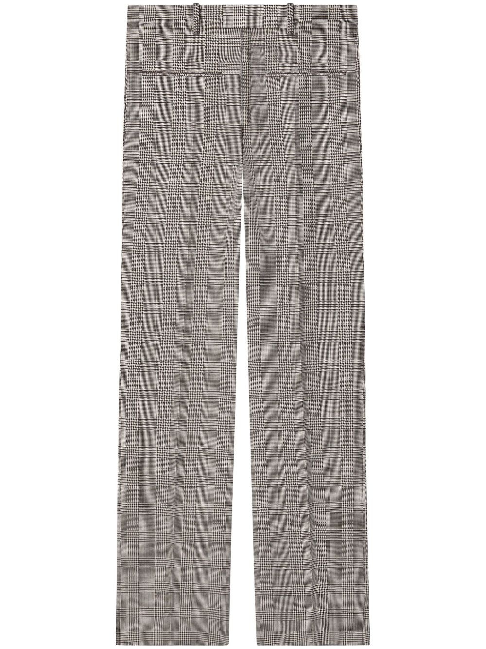 Prince-of-Wales-print straight-leg trousers Highlights - Black/white - Wool blend - Twill weave - Prince of wales check print - Belt loops - Pressed crease - Concealed front fastening - Mid-rise - Straight leg - Two front jetted pockets - Two rear jetted pockets - The crease-effect on this piece is very much intentional, no ironing necessary. Imported Composition Wool 54%, Polyester 46% Washing instructions Read Manufacturer Guidelines