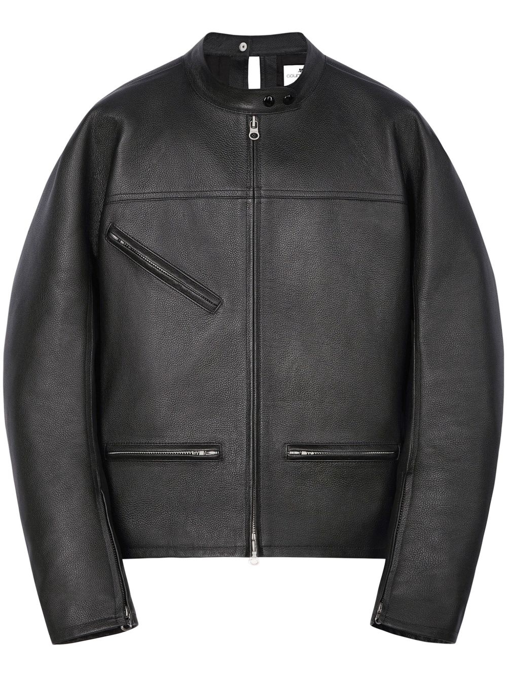 Racer Buckle leather jacket Highlights - Black - Calf leather - Grained texture - Stand-up collar - Long sleeves - Cuff zips - Zip-fastening chest pocket - Front zip fastening pockets - Cut-out detailing to the rear - Straight hem Made in France Composition Calf Leather 100%