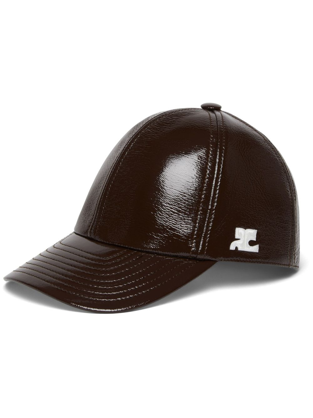Re-Edition cap Highlights - Chocolate brown - Cotton blend - Faux leather - Patent finish - Pull-on style - Fabric-covered button at the crown - Round crown - Applique logo - Curved peak - Adjustable strap to the rear Imported Composition Cotton 88%, Polyurethane 10%, Elastane 2% Washing instructions Specialist Cleaning