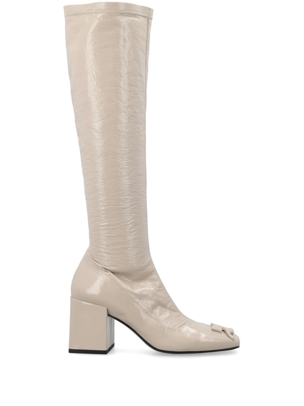 Reedition boots Highlights - Mastic grey - Patent finish - Crease effect - Logo plaque - Square toe - Side zip fastening - Below-knee length - Mid block heel Made in Italy Composition Cotton 100%