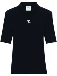 Reedition rib-knit sweater Highlights - Navy blue - Cotton blend - Logo patch to the front - Round neck - Short sleeves - Straight hem Imported Composition Cupro 58%, Cotton 26%, Spandex/Elastane 12%, Polyamide 4%