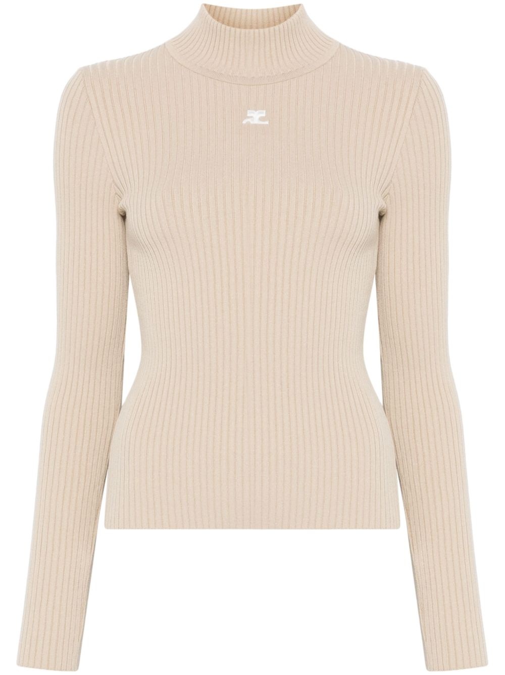 Reedition ribbed sweater Highlights - Light beige - Ribbed knit - Mock neck - Long sleeves - Logo patch to the front - Straight hem Imported Composition Viscose 70%, Polyester 30% SIZE & FIT Model measurements Height 5 ft 10 in(1.78 m) Bust/Chest 33.46 in(85 cm) Hips 36.22 in(92 cm) Waist 23.22 in(59 cm) FittingInformation Designed for a close fit throughout Made from a midweight non-stretch fabric, this piece offers minimal elasticity when worn Measurement BUST 30.7 in(78 cm) LENGTH 22.83 in(58 cm) SLEEVE LENGTH 25.19 in(64 cm) Shoulder Width 14.96 in(38 cm)