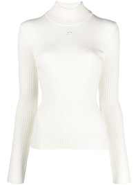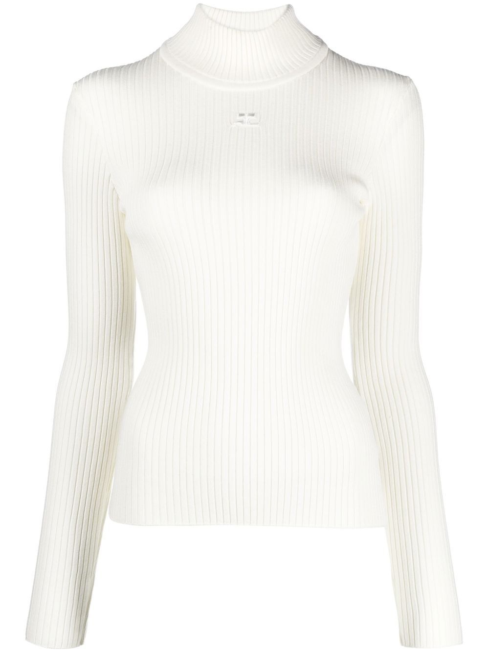 Reedition ribbed sweater Courreges is known for creating simplistic, modern designs. This is reflected on this long-sleeve top from the AW22 collection, which features a refined ribbed-knit construction and tonal colourway. Highlights - Ivory white - Funnel neck - Long sleeves - Ribbed knit - Embroidered logo to the front Imported Composition Viscose 70%, Polyester 30% SIZE & FIT Model measurements Height 5 ft 10 in(1.79 m) Bust/Chest 31.1 in(79 cm) Hips 35.03 in(89 cm) Waist 24.01 in(61 cm) Measurement Shoulder Width 11.41 in(29 cm) LENGTH 22.04 in(56 cm) BUST 23.62 in(60 cm) SLEEVE LENGTH 24.4 in(62 cm) FittingInformation This piece fits true to size. We recommend you get your regular size Cut for a close fit Made with a mid-weight fabric