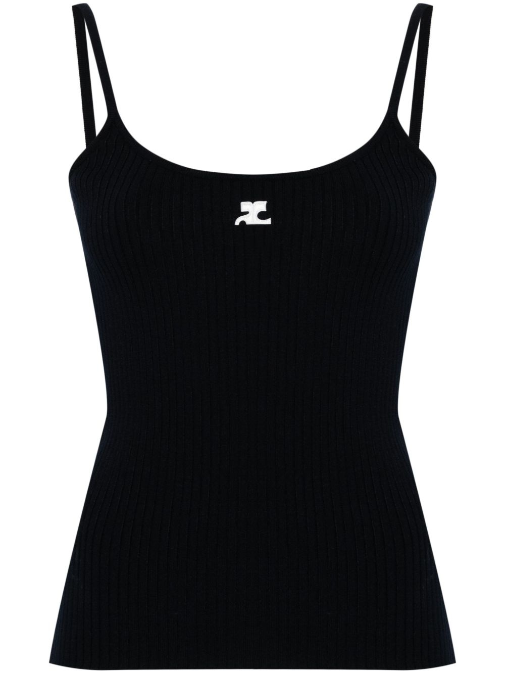 Reedition ribbed tank top Highlights - Navy blue - Ribbed knit - Logo patch to the front - U-neck - Spaghetti straps - Lettuce hem Imported Composition Viscose 70%, Polyester 30% SIZE & FIT Model measurements Height 5 ft 11 in(1.8 m) Bust/Chest 32.67 in(83 cm) Hips 35.82 in(91 cm) Waist 25.98 in(66 cm) Measurement BUST 23.62 in(60 cm) LENGTH 22.83 in(58 cm) FittingInformation Designed for a close fit throughout Made from a midweight non-stretch fabric, this piece offers minimal elasticity when worn