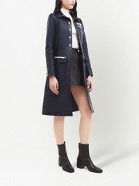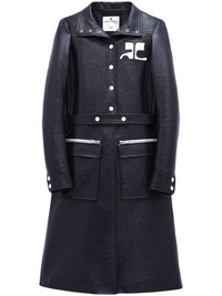 Reedition vinyl trenchcoat navy blue/white stretch-cotton logo patch at the chest front press-stud fastening long sleeves front zip fastening pockets two front flap pockets mid-length Imported Composition Cotton 88%, Polyurethane 10%, Spandex/Elastane 2% SIZE & FIT FittingInformation Designed for a slim fit that sits just away from the body offering a close yet comfortable fit The belt offers adjustability for fitted preferences Made from a midweight stretch fabric, this piece offers elasticity and flexibility when worn