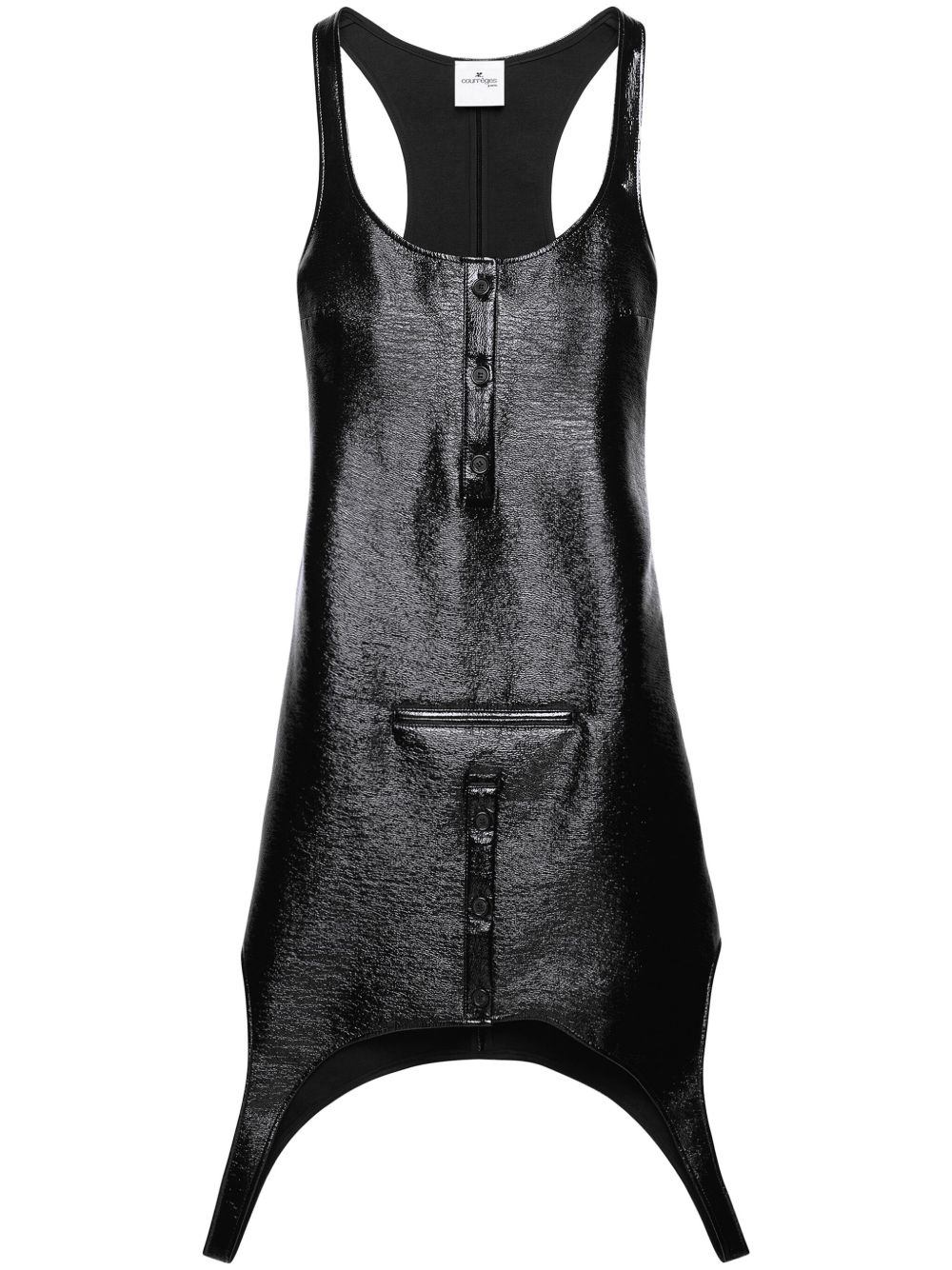 Reversed dress Highlights - Black - Cotton blend - Faux leather - Scoop neck - Sleeveless - Slip pocket to the front - Shift style - Thigh-length - Reversed hem Imported Composition Cotton 88%, Polyurethane 10%, Fabric 2% Washing instructions Read Manufacturer Guidelines