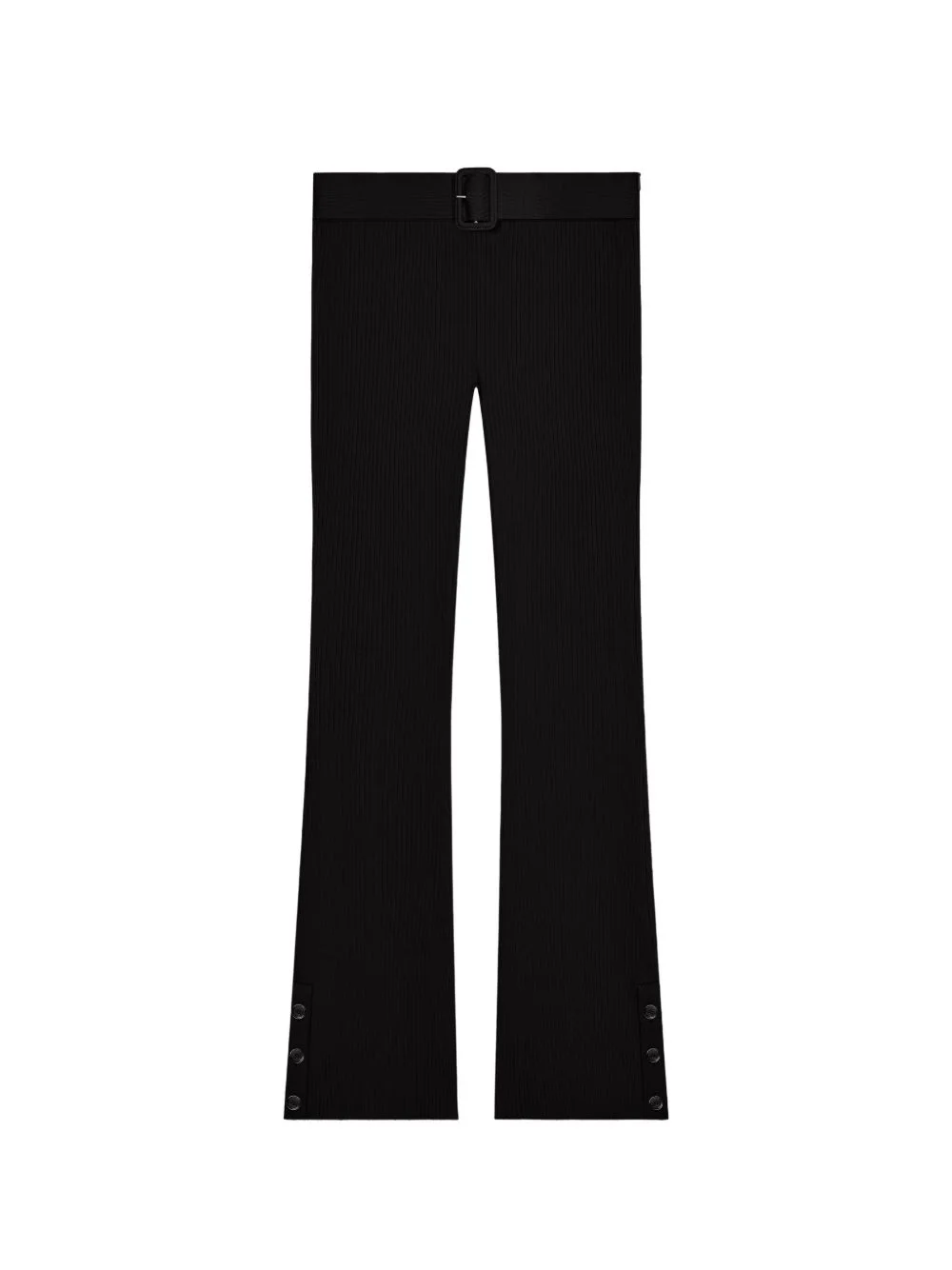 ribbed button capri pants Highlights - Black - Ribbed-knit - Belt - Button-detail - Capri length - Flared-hem Imported Composition Viscose 70%, Polyester 30% Washing instructions Read Manufacturer Guidelines