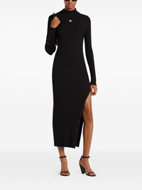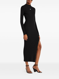 ribbed button-detail dress Highlights - Black - Mock neck - Full-length sleeves - Side slit - Button embellishments - Logo motif Imported Composition Viscose 70%, Polyester 30% Washing instructions Read Manufacturer Guidelines