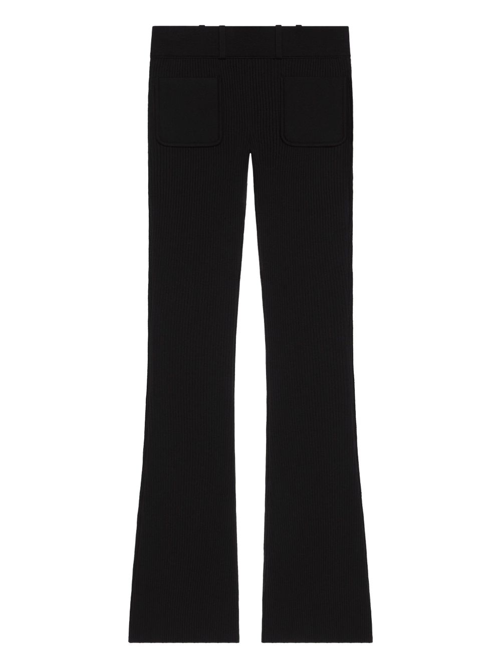 ribbed flared trousers Highlights - Black - Ribbed knit - Two front pockets - Mid-rise - Flared hem Imported Composition Viscose 70%, Polyester 30% Washing instructions Read Manufacturer Guidelines
