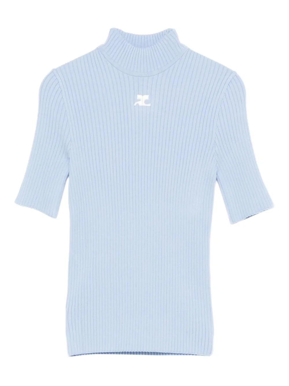 ribbed high-neck top Highlights - Light blue - Ribbed texture - High neck - Short sleeves - Logo detail Imported Composition Viscose 70%, Polyester 30% SIZE & FIT Model measurements Height 5 ft 10 in(1.78 m) Bust/Chest 31.49 in(80 cm) Hips 37 in(94 cm) Waist 23.62 in(60 cm) Washing instructions Read Manufacturer Guidelines