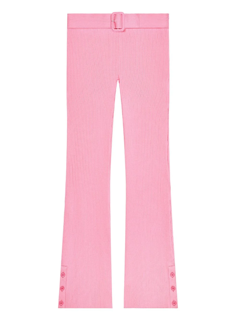 ribbed-knit belted trousers Highlights - Party pink - Rib knit - Belt - Button detail - Capri length - Flared hem Imported Composition Outer: Viscose 70%, Polyester 30% Washing instructions Read Manufacturer Guidelines
