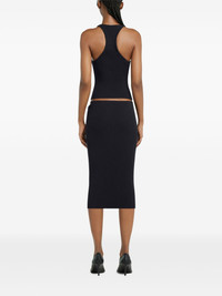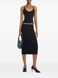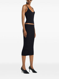 ribbed-knit midi skirt Highlights - Black - Adjustable strap to the side - Embroidered logo to the front - Elasticated waistband Imported Composition Viscose 70%, Polyester 30% Washing instructions Read Manufacturer Guidelines