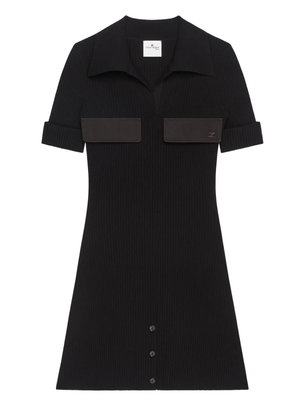 ribbed-knit polo mini dress Highlights - Black - Ribbed-knit - Polo-collar - Button-fastening - Short-sleeves - Chest-pockets Imported Composition Viscose 70%, Polyester 30% Washing instructions Read Manufacturer Guidelines