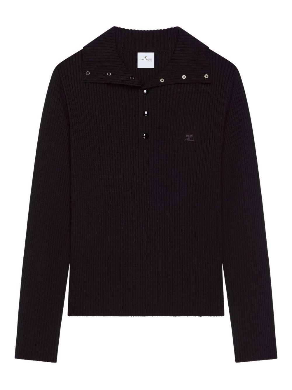 ribbed-knit polo sweater Highlights - Black - Press-stud placket - Spread collar - Long sleeves - Embroidered logo detail Made in Italy Composition Merino 100% Washing instructions Read Manufacturer Guidelines