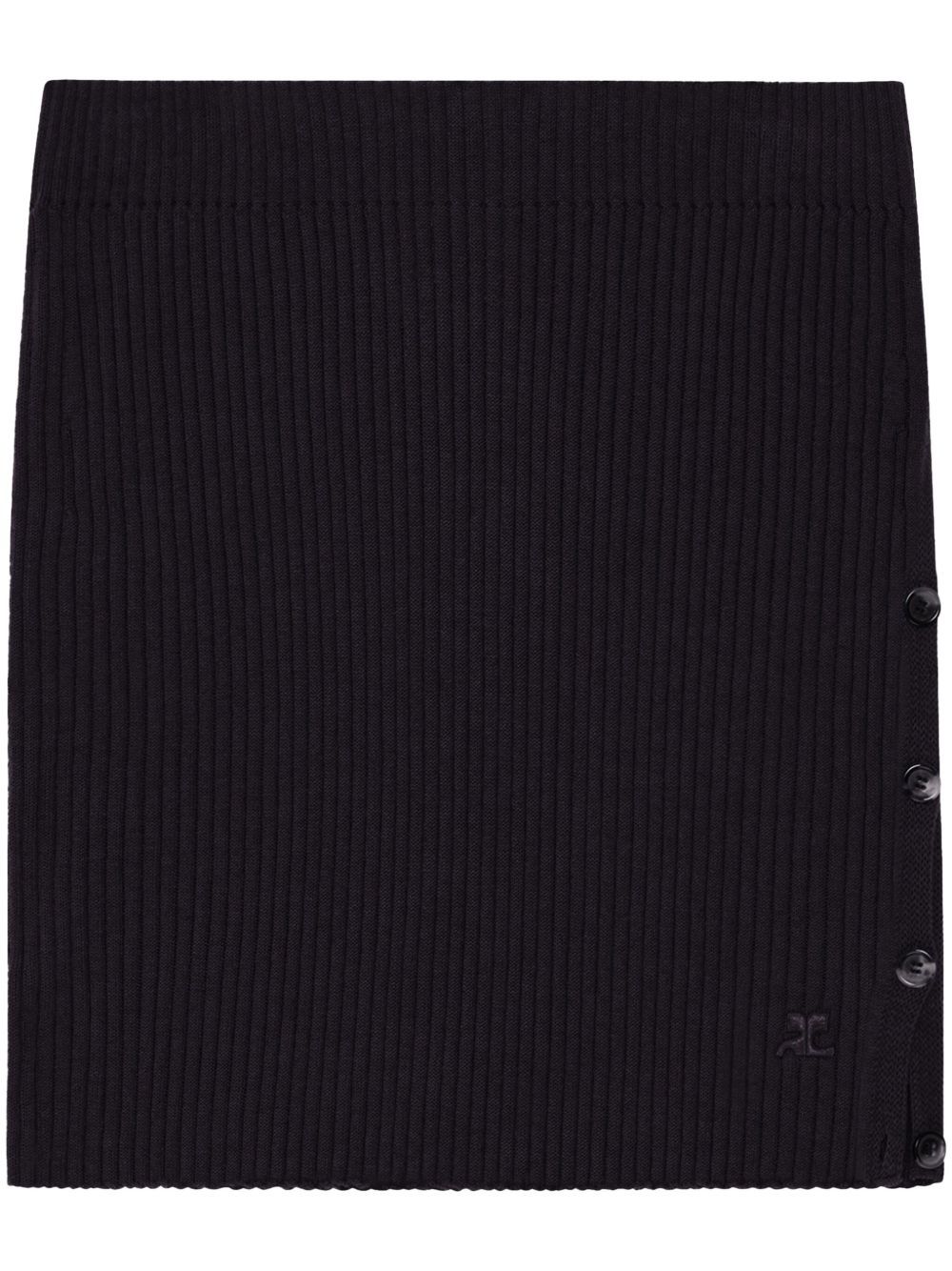 ribbed mini skirt Highlights - Black - Elasticated waistband - Side button fastening - Embroidered logo to the front - Straight hem Made in Italy Composition Cotton 80%, Merino 20%