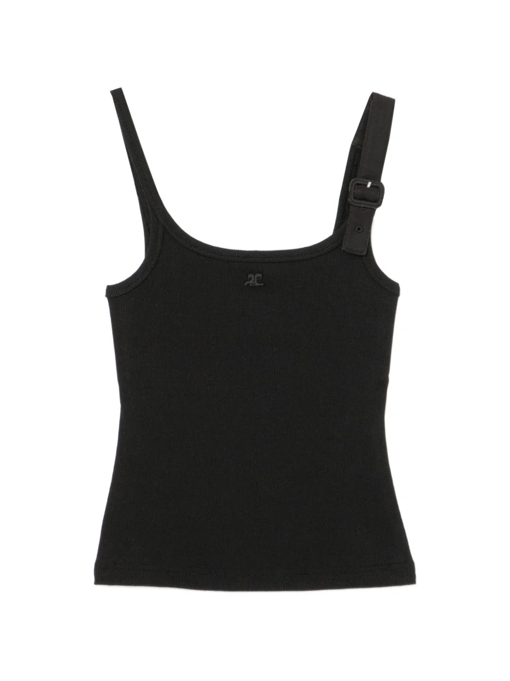 ribbed sleeveless top Highlights - Black - Ribbed texture - Sleeveless - Scoop neck - Adjustable straps - Logo detail Imported Composition Cotton 98%, Elastane 2% Washing instructions Machine Wash