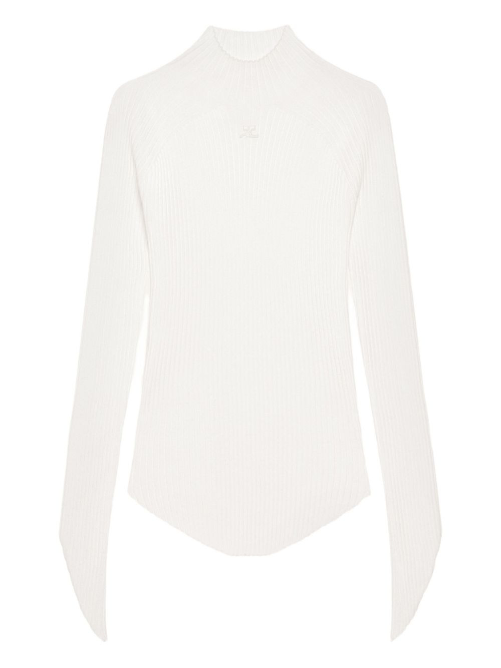 ribbed turtleneck top Highlights - White - High neck - Long sleeves - Ribbed texture - Logo detail Made in Italy Composition Outer: Viscose 70%, Polyester 30% Washing instructions Read Manufacturer Guidelines