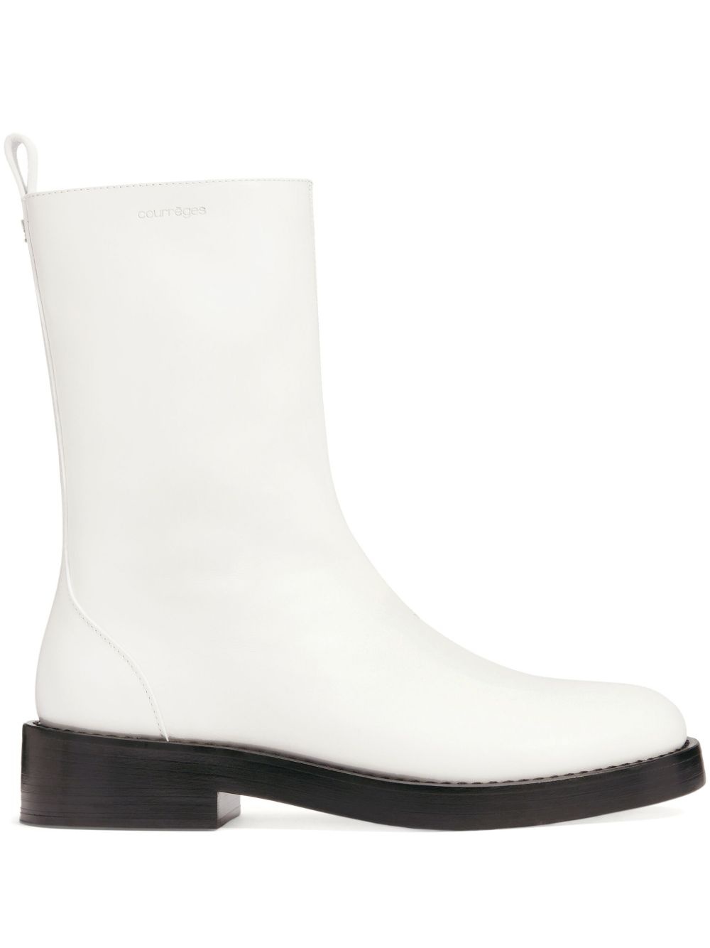 Rider leather boots Highlights - White/black - Calf leather - Smooth grain - Side zip fastening - Pull-tab at the heel - Low stacked heel - Round toe - Branded leather insole - Leather sole Made in Italy Composition Sole: Calf Leather 100% Outer: Calf Leather 100% Lining: Leather 100% SIZE & FIT Measurement HEEL 1.77 in(4.5 cm) CIRCUMFERENCE 11.81 in(30 cm) Sole height 0.78 in(2 cm) HEIGHT 9.05 in(23 cm)