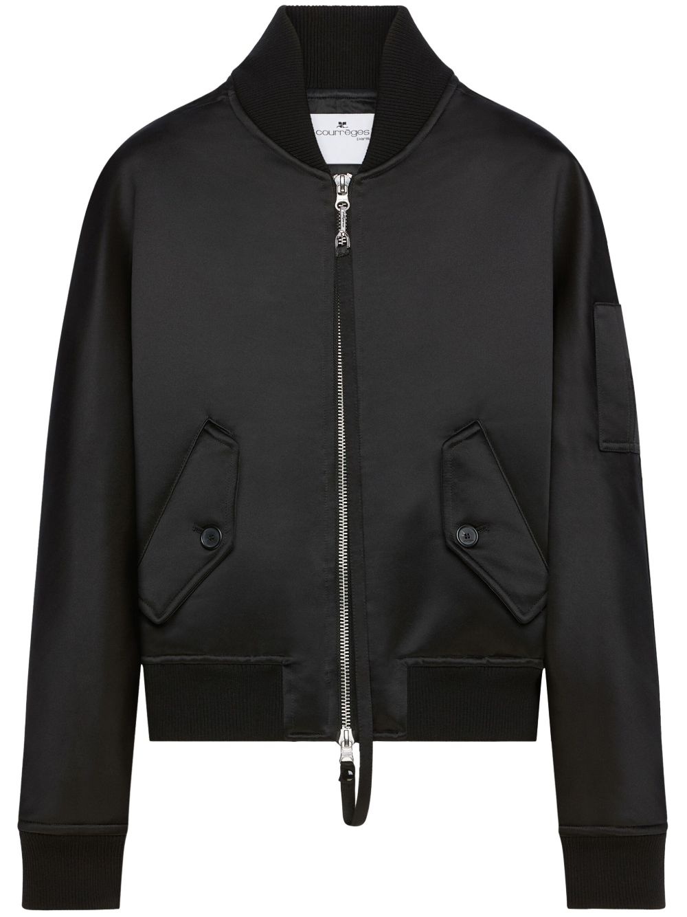 satin bomber jacket Highlights - Black - Two-way zip fastening - Two side flap pockets - Logo patch to the rear - Baseball collar Imported Composition Polyester 100%