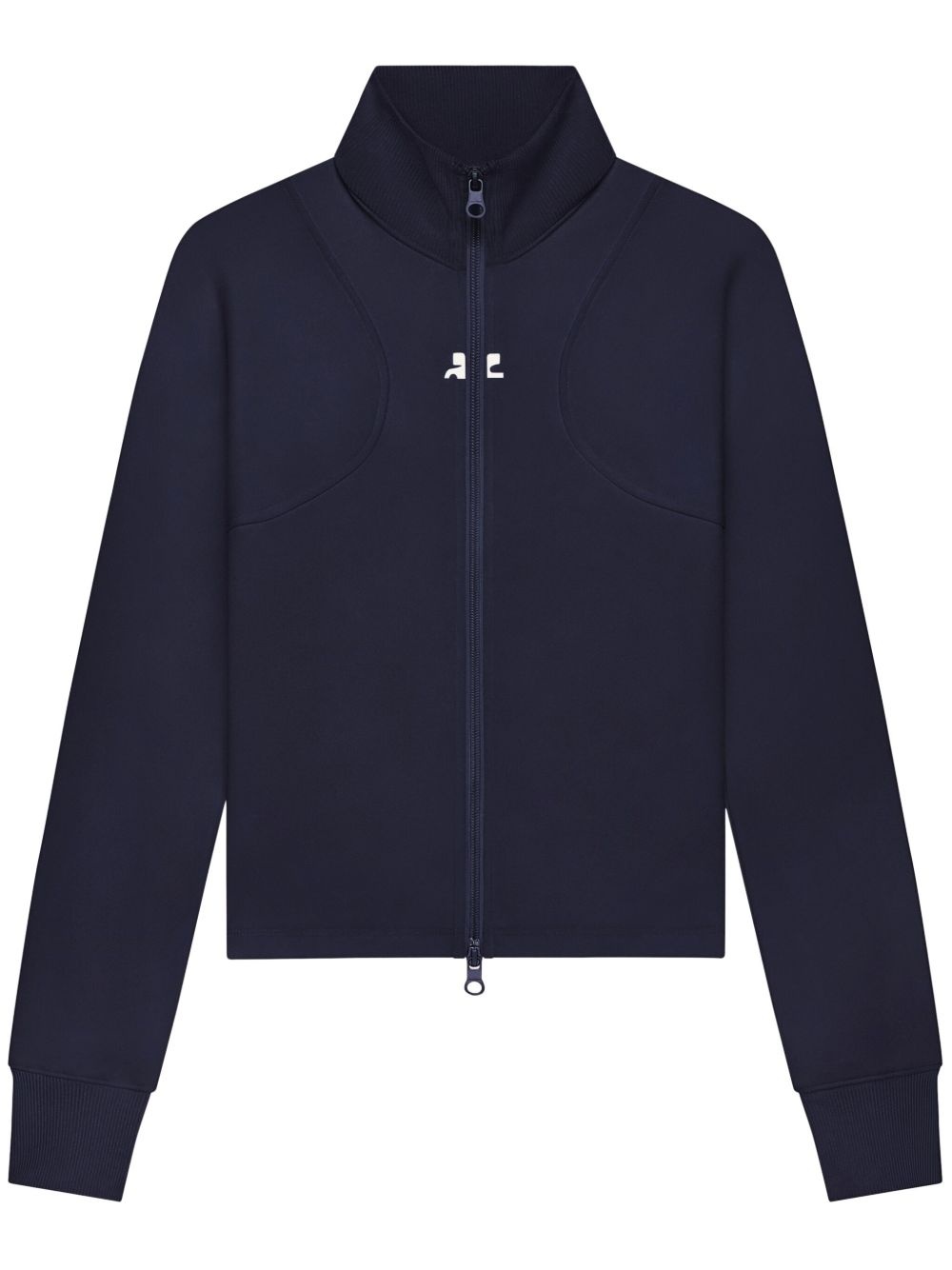 scuba-jersey jacket Highlights - Navy blue - Front two-way zip fastening - Stand-up collar - Ribbed cuffs - Embroidered logo at the chest Imported Composition Polyester 100%