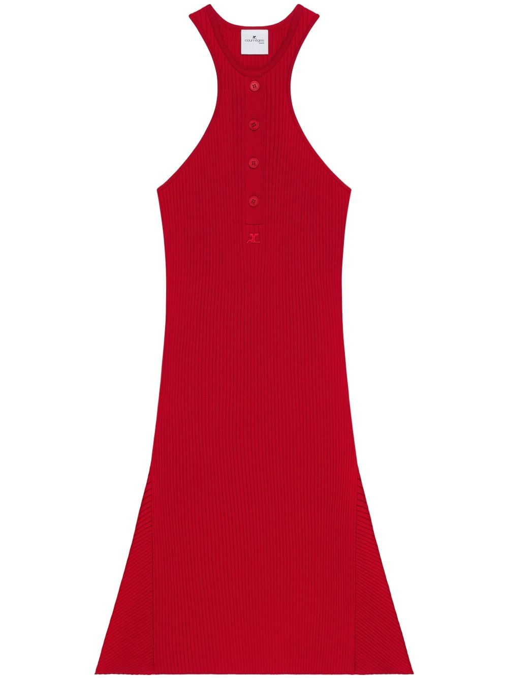 Scuba mini dress Highlights - Red - Front button placket - Embroidered logo to the front - Racerback - A-line Imported Composition Polyester 100%
