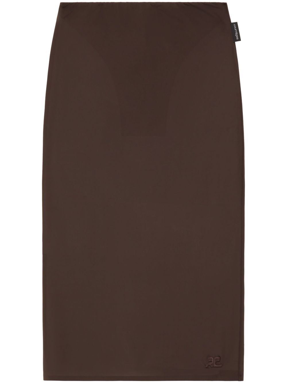 semi-sheer midi skirt Highlights - Coffee brown - Stretch-design - Semi-sheer construction - Mini logo tag - Elasticated waistband - Below-knee length - Straight hem Made in Italy Composition Polyamide 90%, Elastane 10%