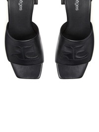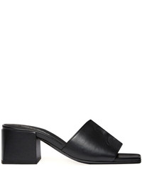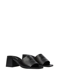 Shadow mules Highlights - Black - Block heel - Square open toe - Embossed logo to the front Made in Italy Composition Lining: Calf Leather 100% Outer: Sheepskin 100% Sole: Rubber 100%, Calf Leather 100%
