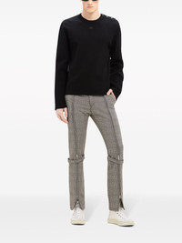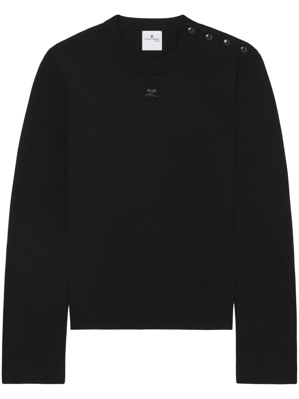 shoulder snaps sweater Highlights - Black - Jersey texture - Applique logo - Crew neck - Press-stud fastening at the shoulder - Long sleeves - Ribbed trim - Straight hem Imported Composition Viscose 70%, Polyester 30%
