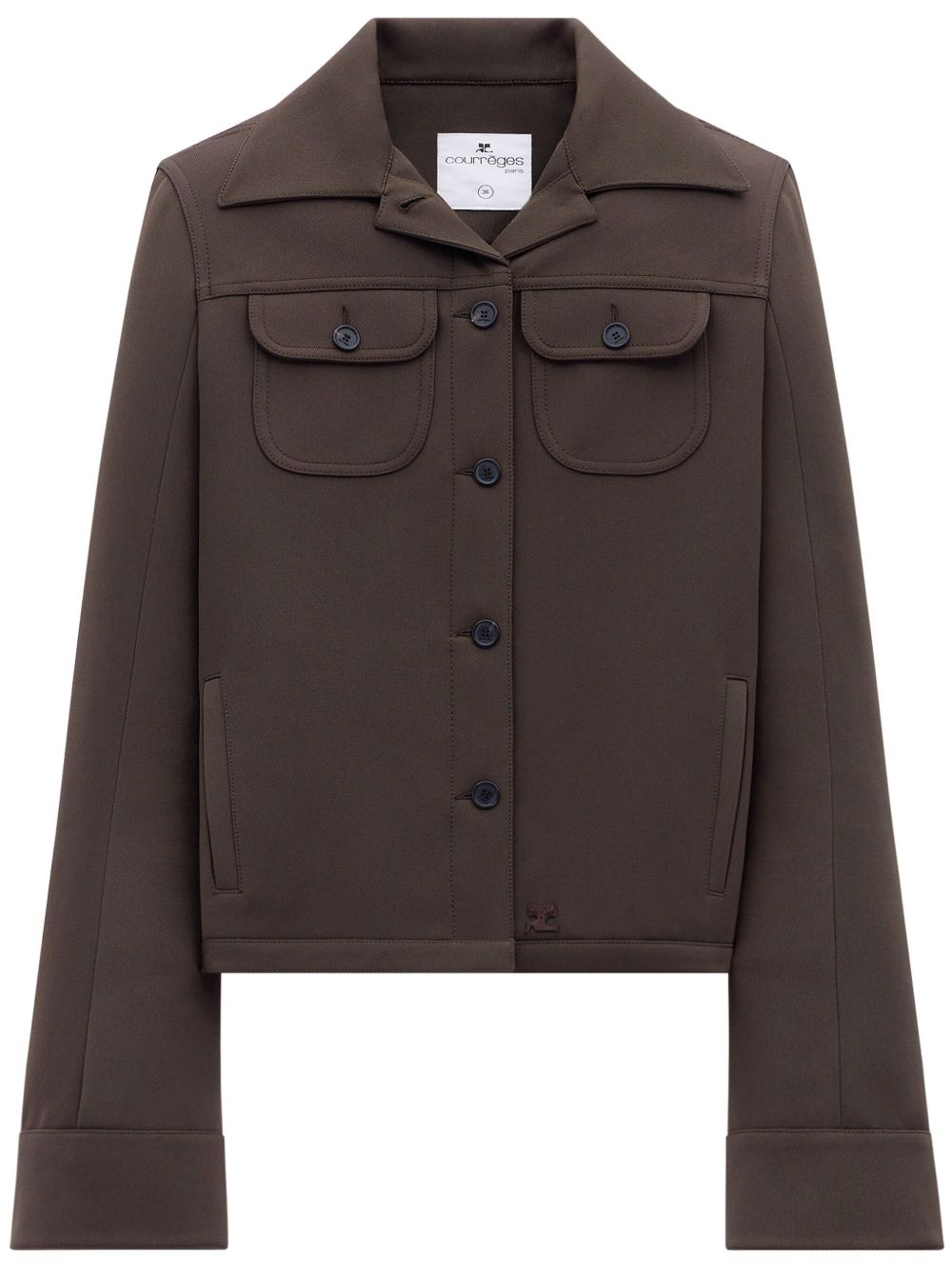 single-breasted twill jacket Courreges is renowned for minimally featuring house logos. True to the label’s approach, this single-breasted jacket is simply adorned with a tonal embroidered logo on a plain brown background. Highlights - Brown - Applique logo - Notched collar - Front button fastening - Long sleeves - Two chest patch pockets - Two side slash pockets - Straight hem Imported Composition Polyester 83%, Acetate 17%