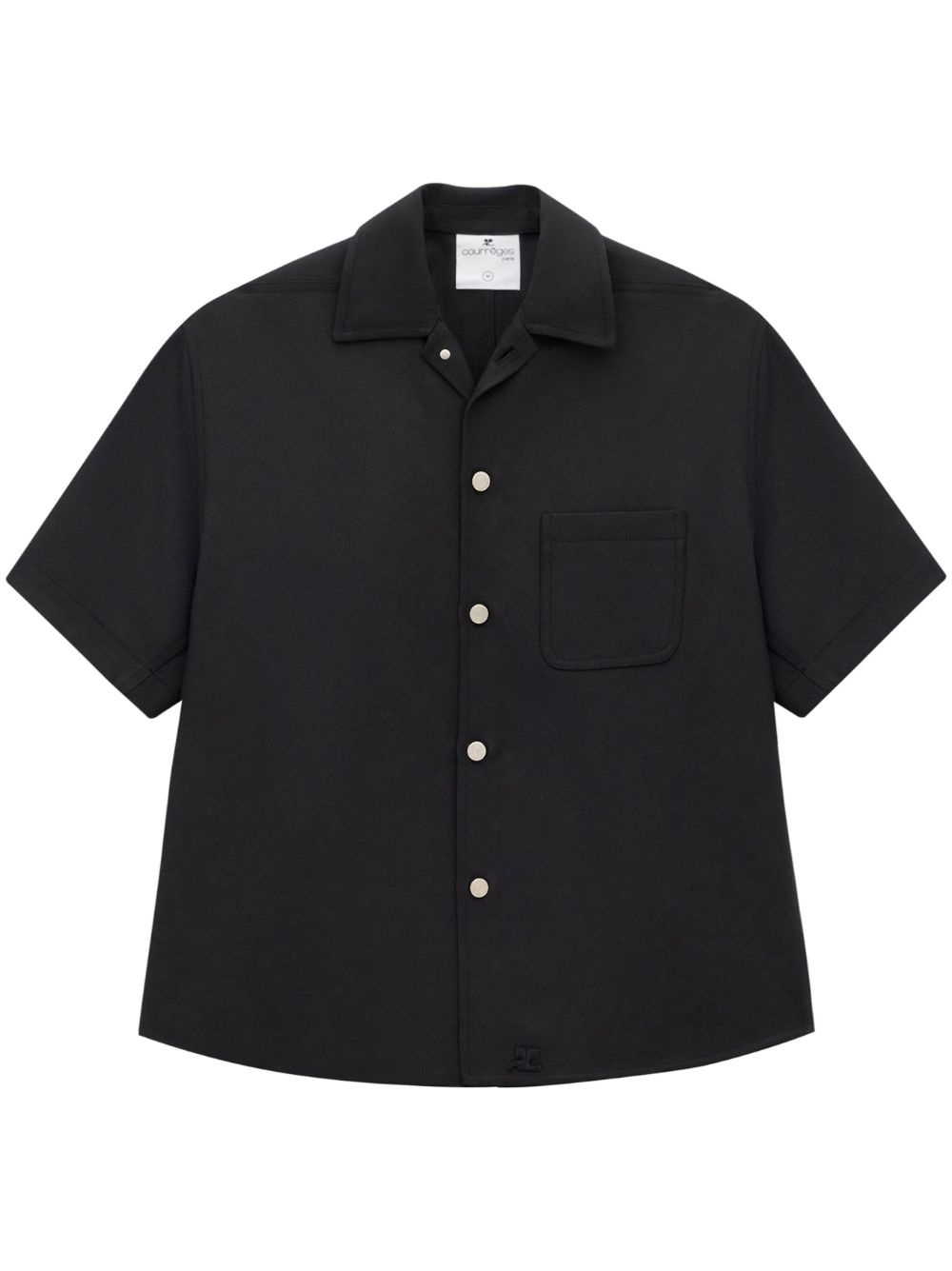 Skater Retro Twill Shirt black camp collar short sleeves front button fastening chest patch pocket logo patch to the side Imported Composition Polyester 100% SIZE & FIT Measurement CHEST 48.03 in(122 cm) SLEEVE LENGTH 11.02 in(28 cm) LENGTH 32.28 in(82 cm) WAIST 48.03 in(122 cm) Shoulder Width 20.86 in(53 cm) Washing instructions Hand Wash