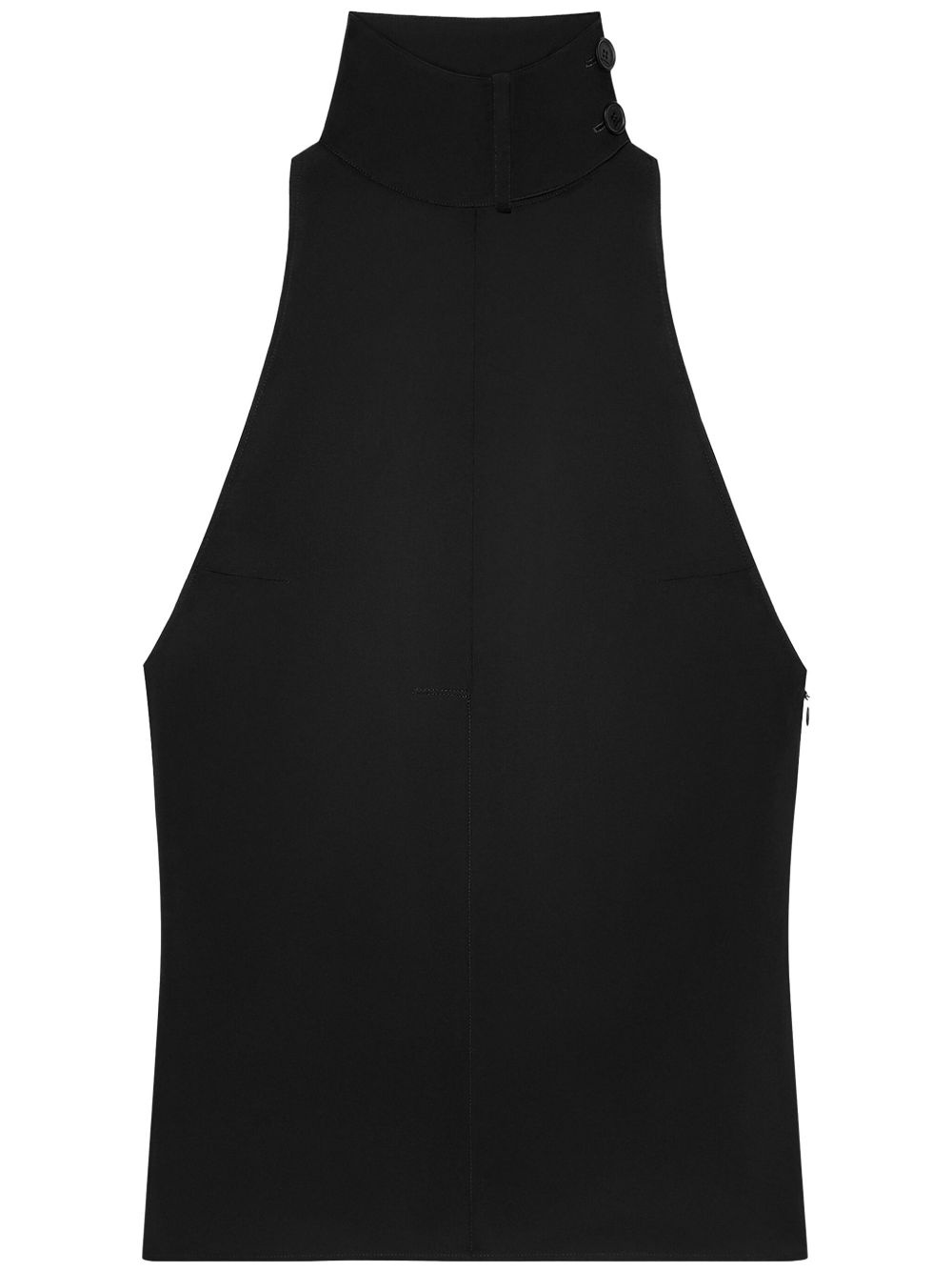 sleeveless blouse Highlights - Black - Concealed side zip fastening - Button-down collar - Scarf detailing - Single loop Imported Composition Polyester 100%