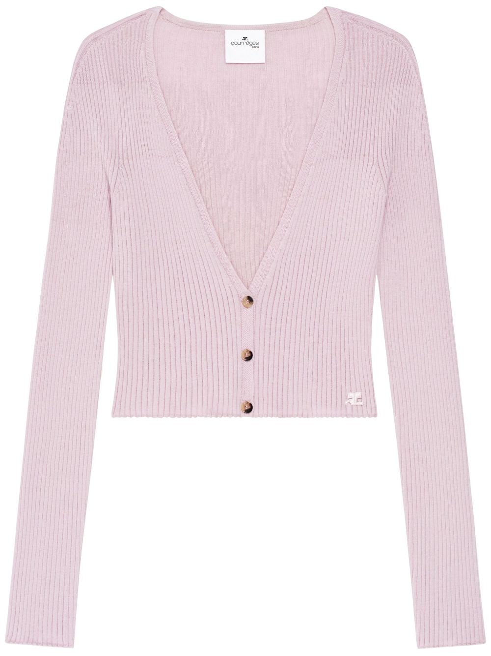 Solar cardigan Highlights - Light pink - Front button fastening - Fine ribbed - Applique logo - Cropped Made in Italy Composition Cotton 80%, Merino 20%