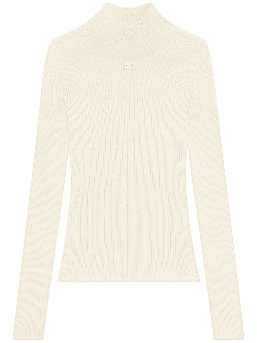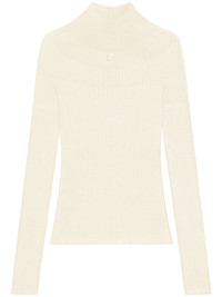 Solar jumper Highlights - Cream white - Organic cotton-merino wool blend - Ribbed knit - Applique logo - Mock neck - Long sleeves - Straight hem Made in Italy Composition Cotton 80%, Merino 20% SIZE & FIT FittingInformation Designed for a close fit throughout Made with a lightweight knit, this piece offers some stretch
