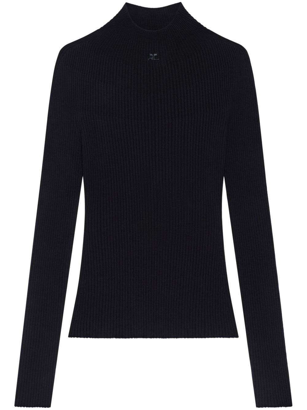 Solar jumper Highlights - Black - Applique logo - Fine ribbed - Mock neck - Long sleeves Made in Italy Composition Cotton 80%, Merino 20%