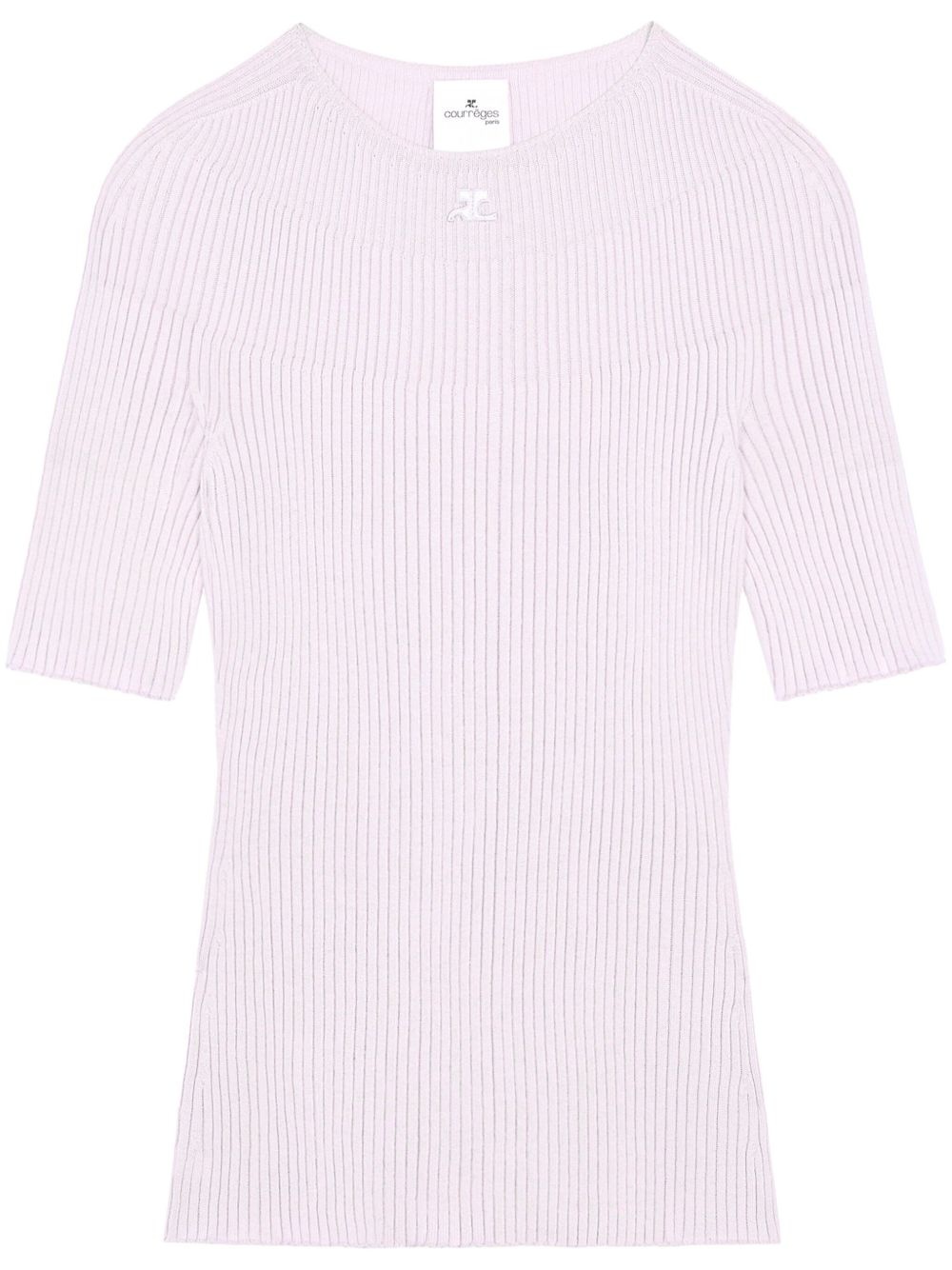 Solar ribbed sweater Highlights - Light pink - Cotton-wool blend - Ribbed knit - Embroidered logo to the front - Round neck - Short sleeves - Straight hem Made in Italy Composition Cotton 80%, Wool 20%