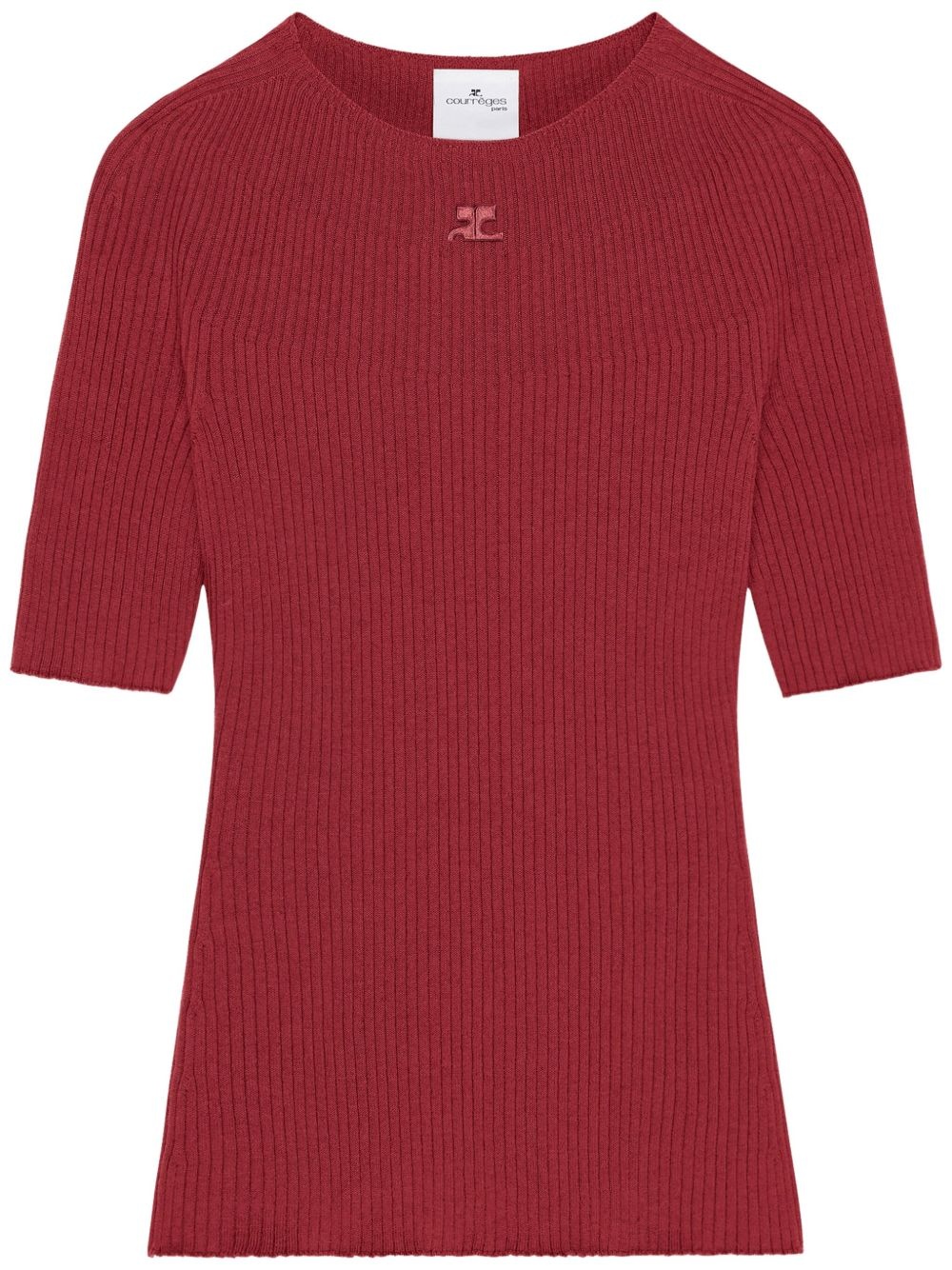 Solar ribbed sweater Highlights - Dark red - Cotton-merino wool blend - Ribbed knit - Logo patch to the front - Round neck - Short sleeves - Straight hem Made in Italy Composition Cotton 80%, Merino 20% Washing instructions Read Manufacturer Guidelines